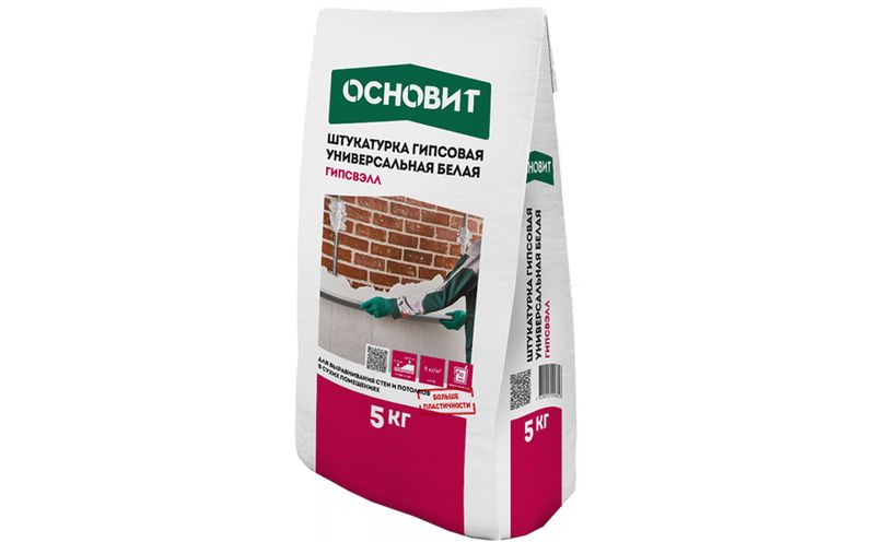 Гипсовая штукатурка универсальная ОСНОВИТ ГИПСВЭЛЛ PG25W белая, 5 кг